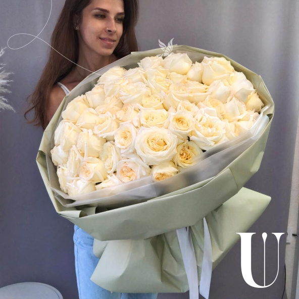 - Роза Кэндллайт Эквадор, бело-золотистая 50 см - 45 шт