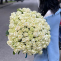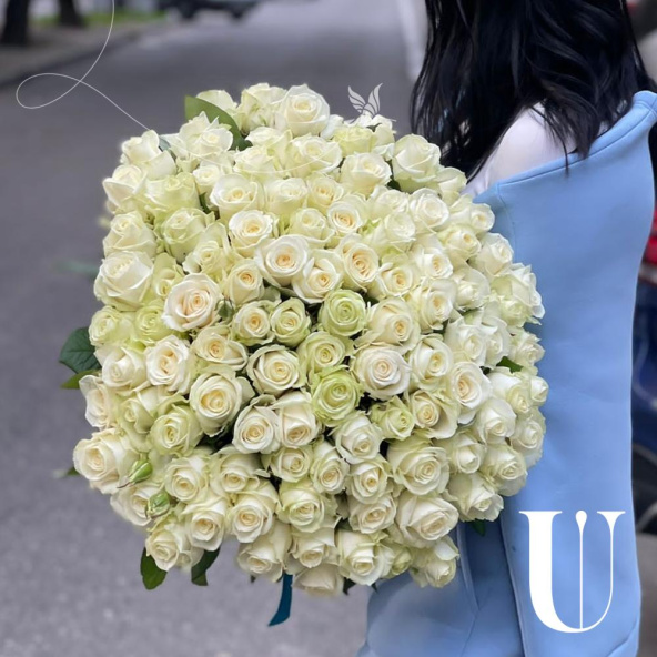Роскошный монобукет из 101 красной розы с атласной лентой