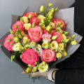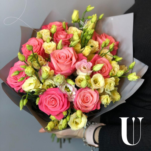 Монобукет из розовых и белых гортензий в дизайнерской упаковке