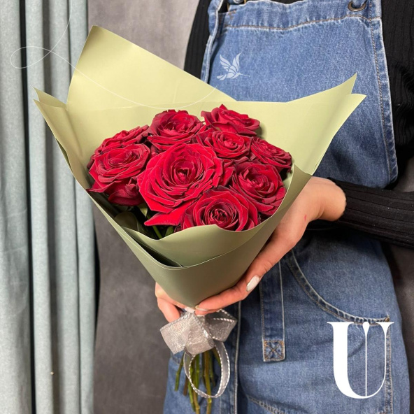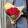 Букет из 7 белых кустовых хризантем в крафтовой упаковке