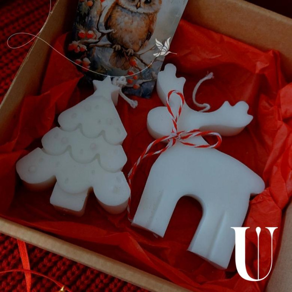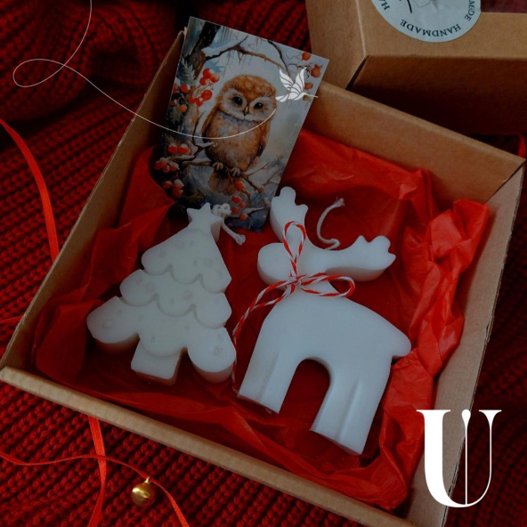 Новогодний набор из двух свечей (кокосовый воск) в крафтовой коробке с открыткой.